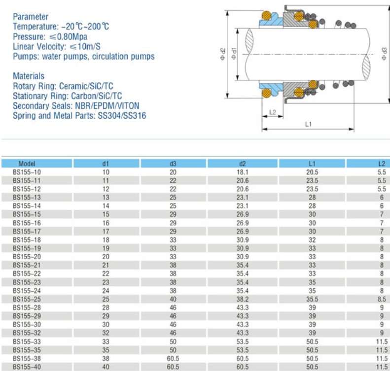 Торцевое уплотнение Burgmann 155 BT-FN в Минске в наличии