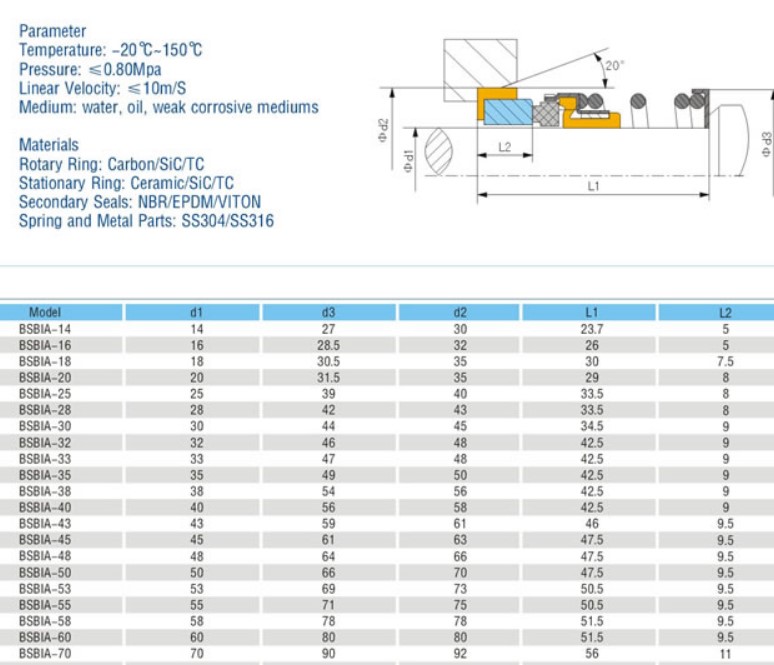 Торцевое уплотнение BSBIA в Минске в наличии